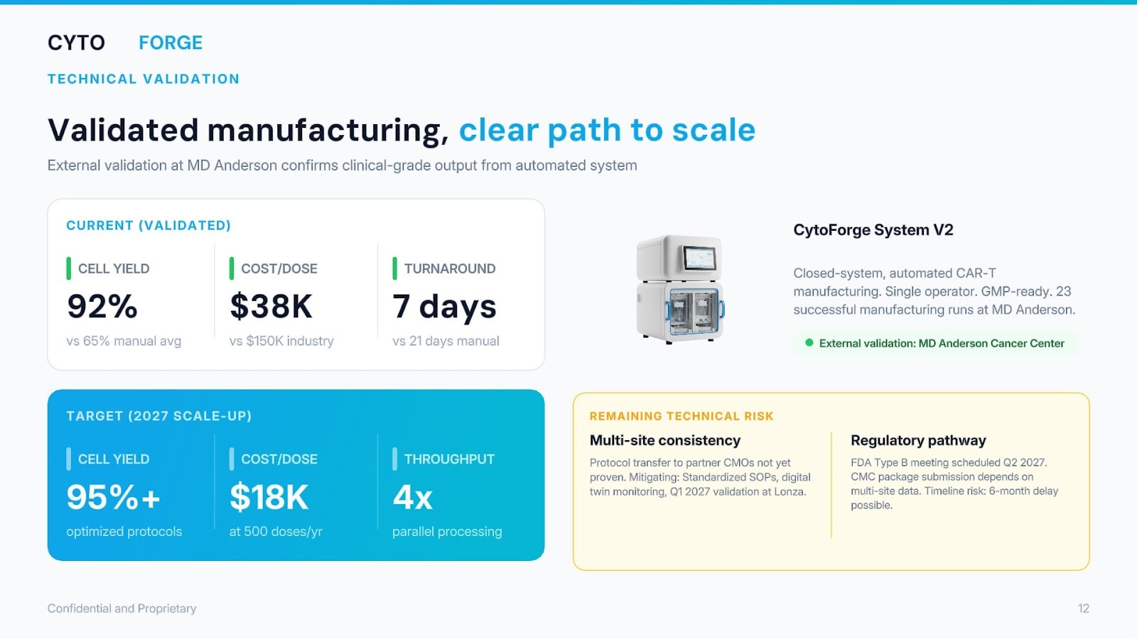 - Precedent for the approach: Following validated formats (e.g., monoclonal antibodies or standard silicon-based sensors) is lower risk than entirely novel formats with no known manufacturing path.