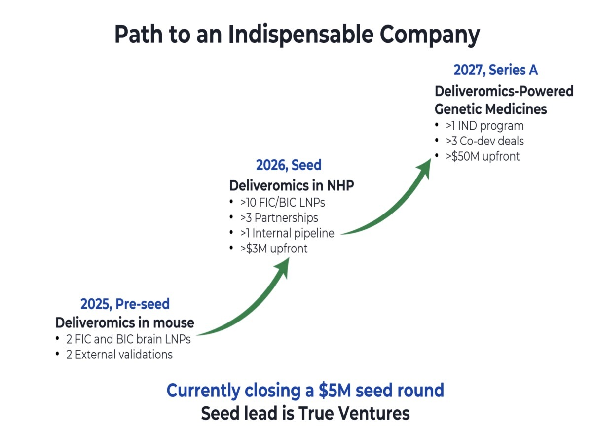 Be precise about what data package this round generates and why that package is sufficient for the next financing or partnership event. "This $8M seed funds IND-enabling tox studies and CMC development, targeting IND filing in Q3 2026 and a Series A to fund Phase I."