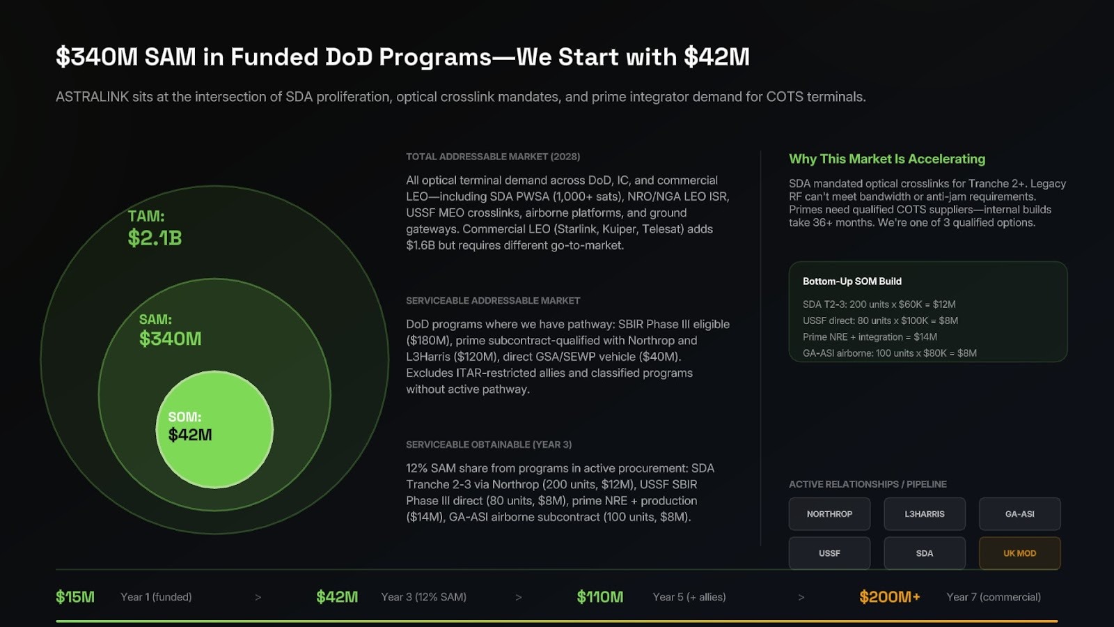 Great founders in defense can explain exactly how their solution will get on contract: not just technically, but through specific contract vehicles, program office relationships, and acquisition timelines. They understand the path to scale and can map how the business will evolve at each procurement gate.