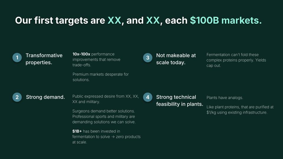 - Raise sized to a specific scale-up milestone with clear technical targets (batch size, yield, purity, cost per unit)