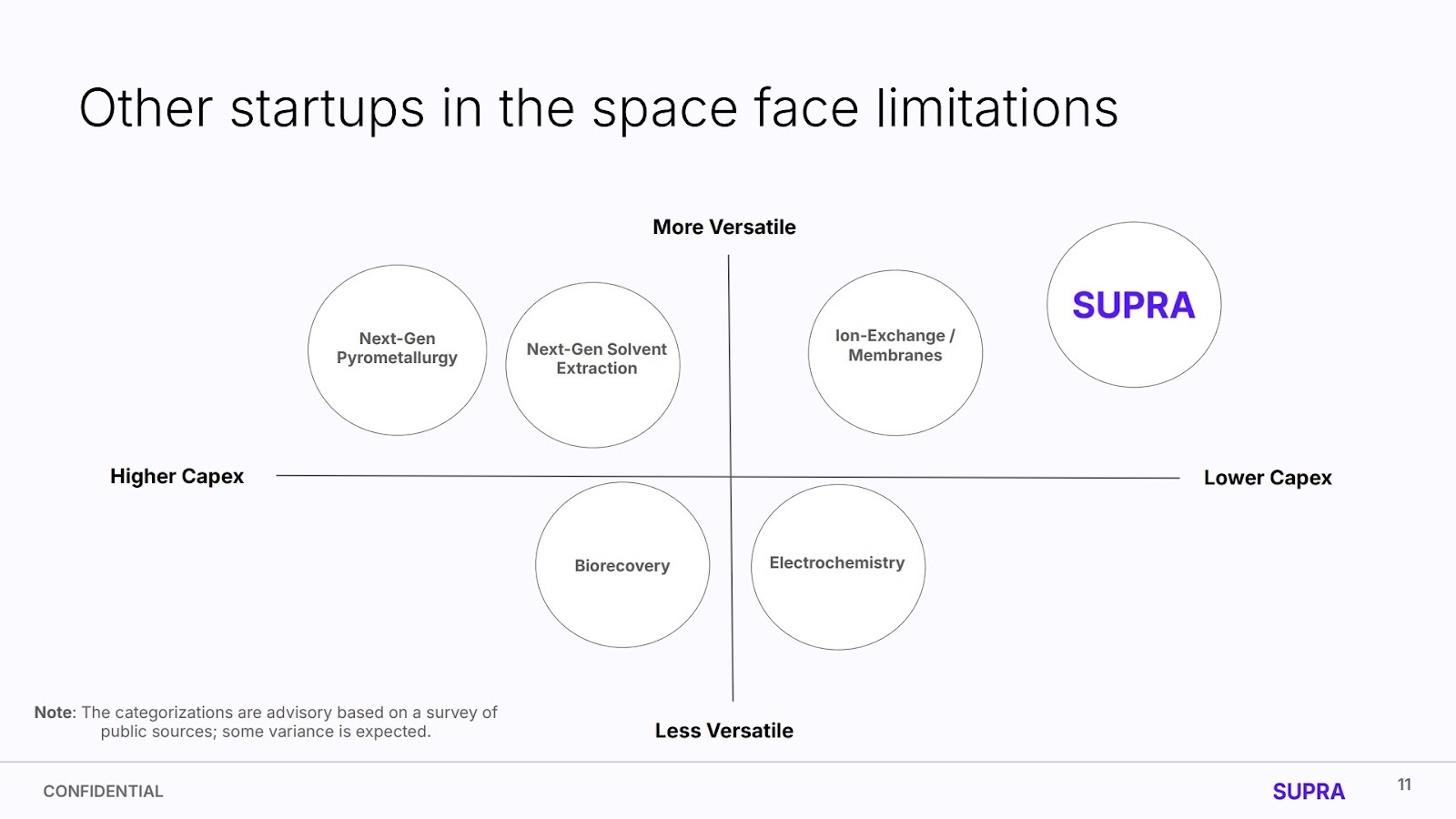 The solution must address why it's better than: (1) existing workflows with process optimization, (2) incumbent suppliers' roadmap materials/solutions, (3) other startups tackling the same problem.